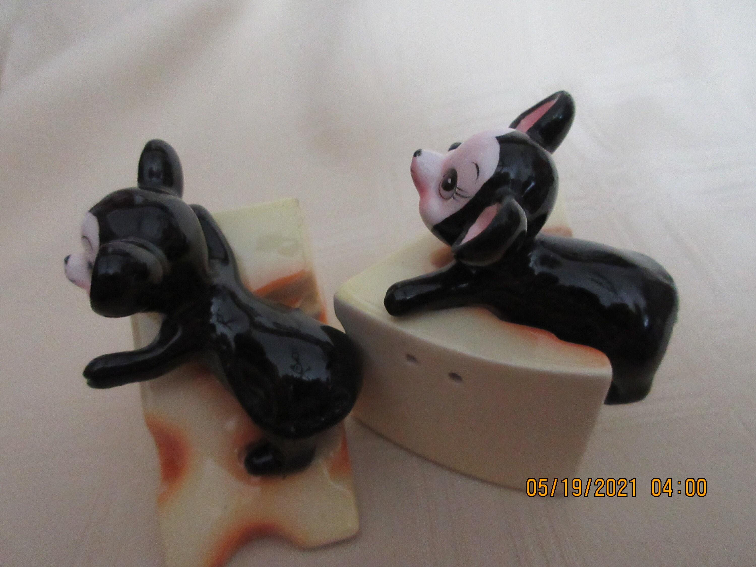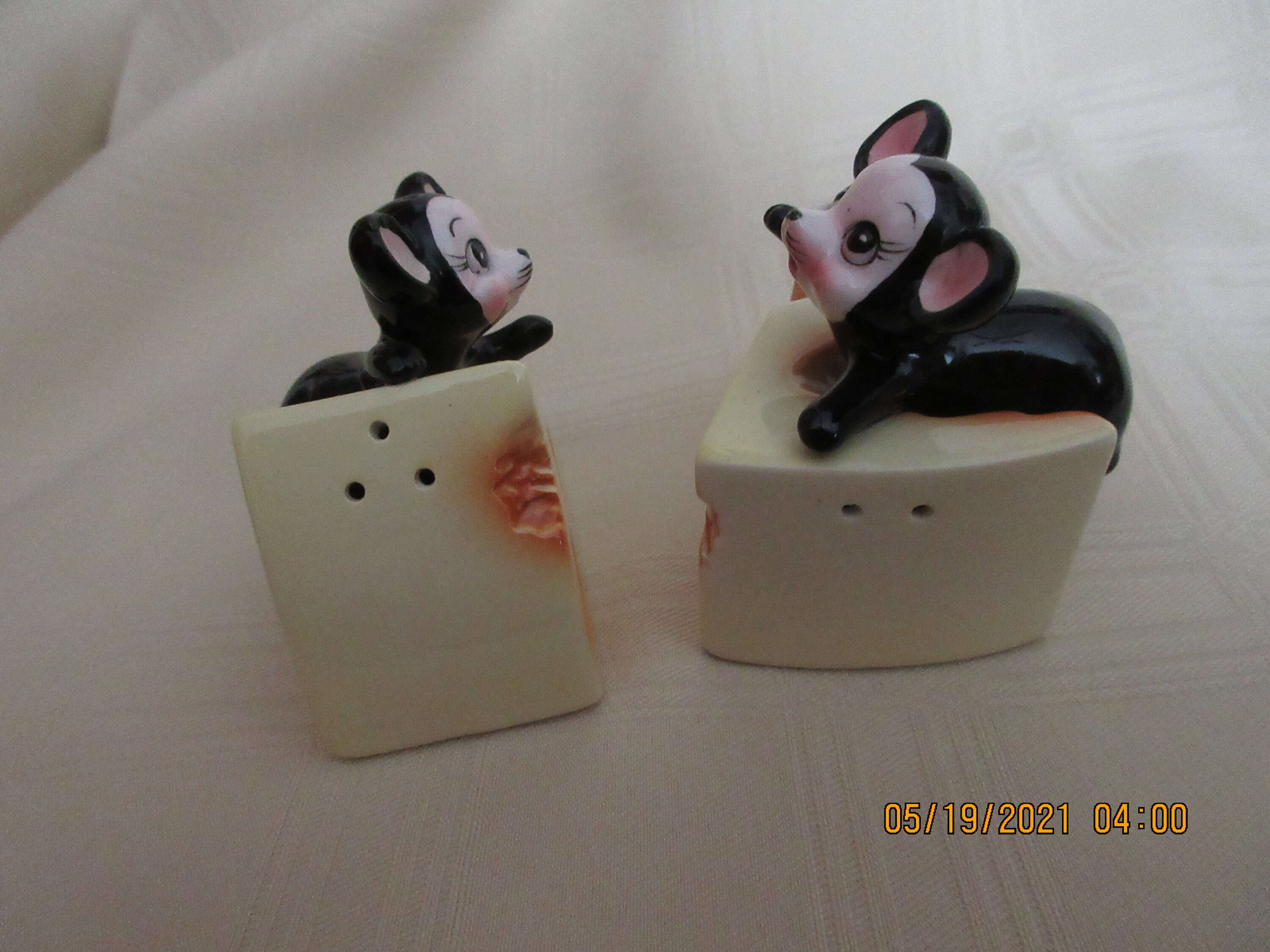 1225 - This set of salt and pepper shakers are used but in good condition. There is some wear of paint on one of the noses (see picture).