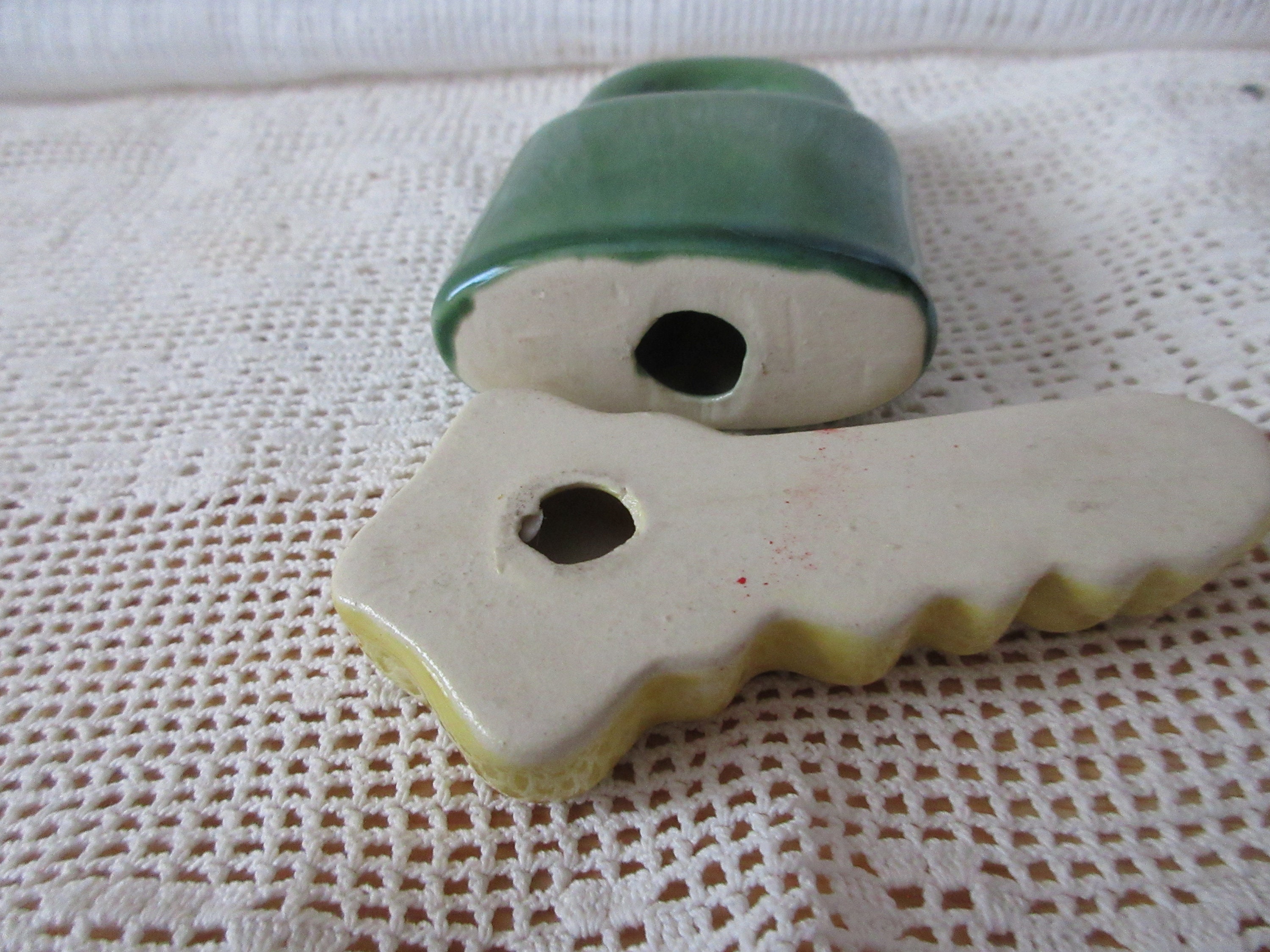 The key is yellow and measures 3 1/2 inches long. There are no markings to stopper.