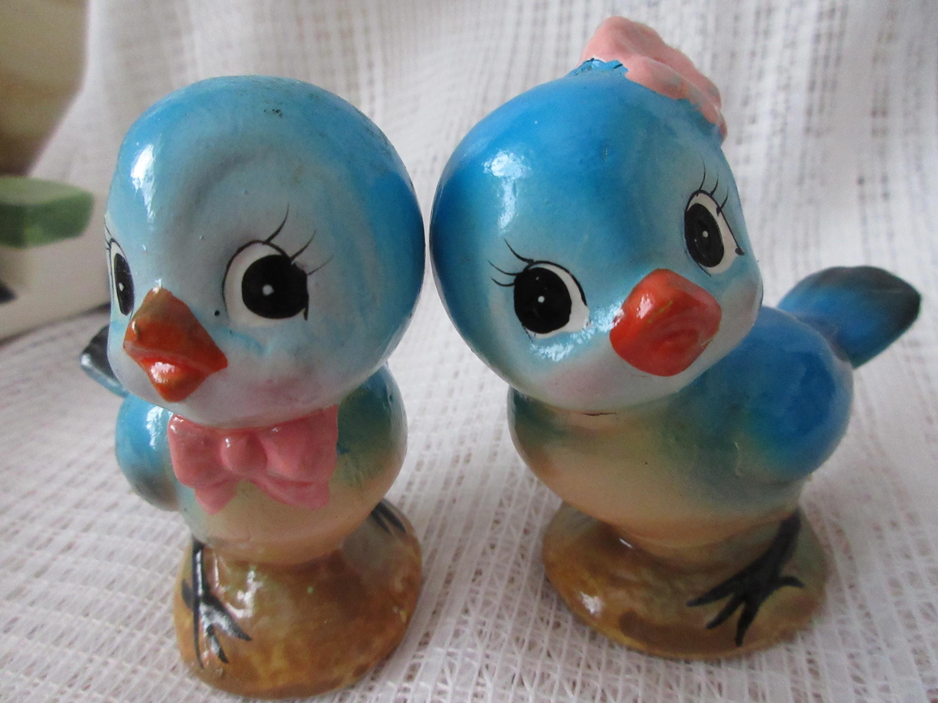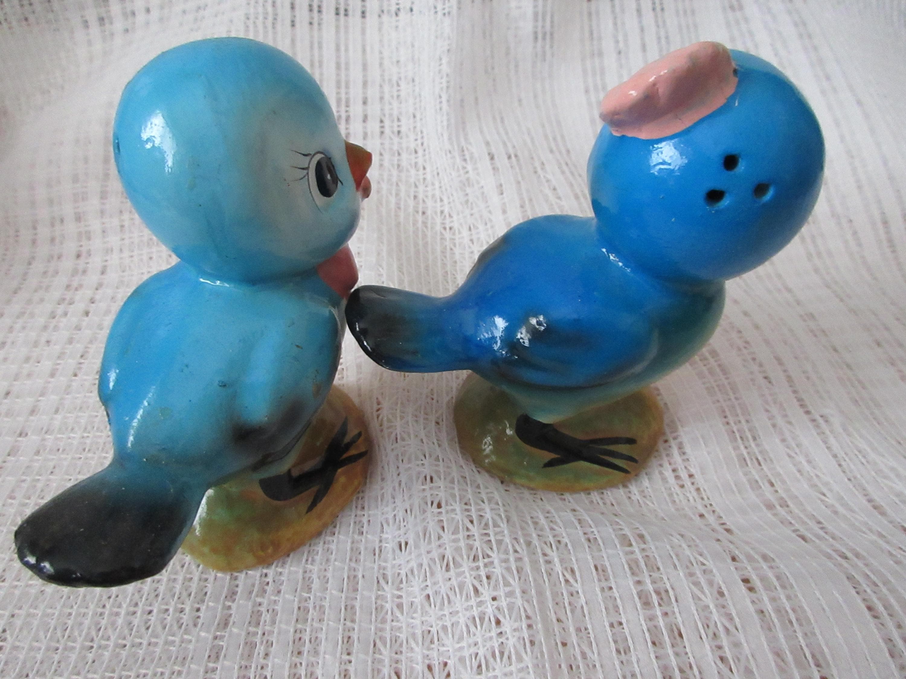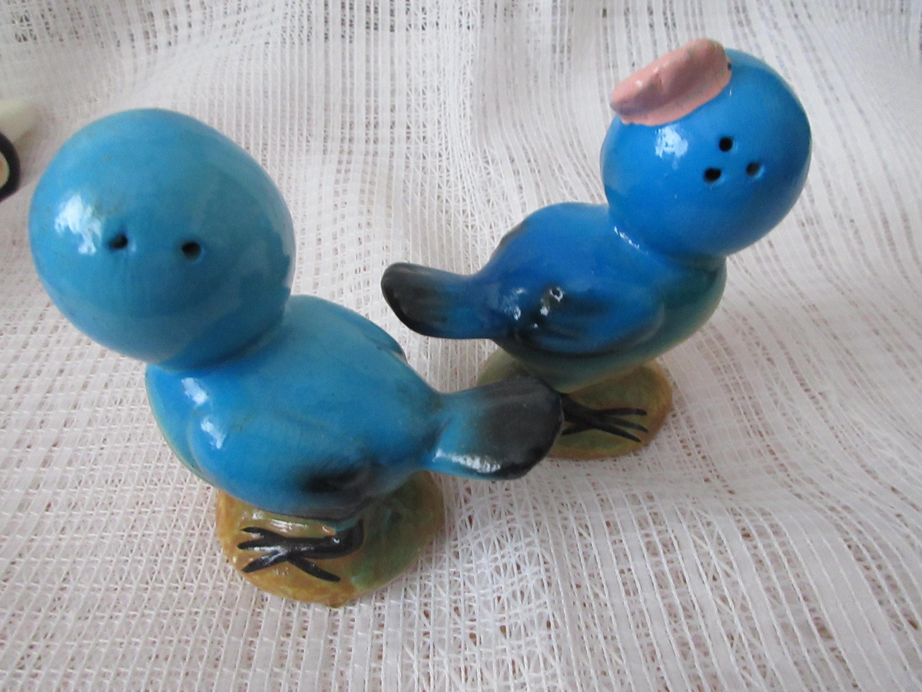 1521 - This set of bluebirds are used and in good condition with a few tiny chips (see photos).  The set was made in Taiwan which is marked on the bottom of one shaker.