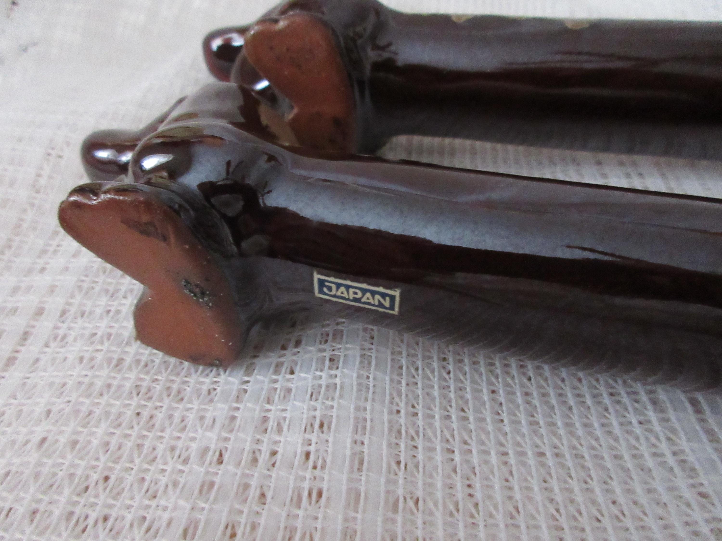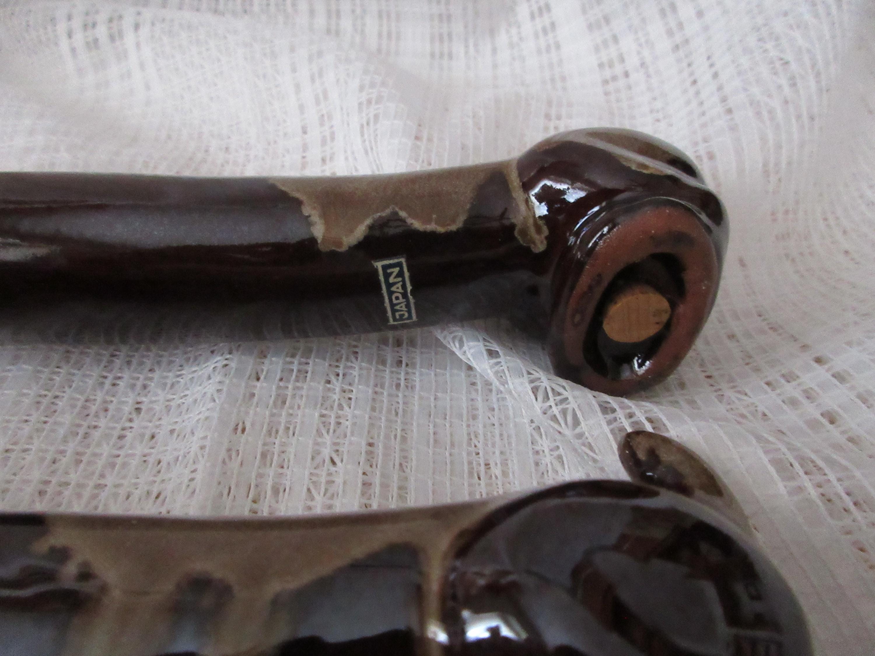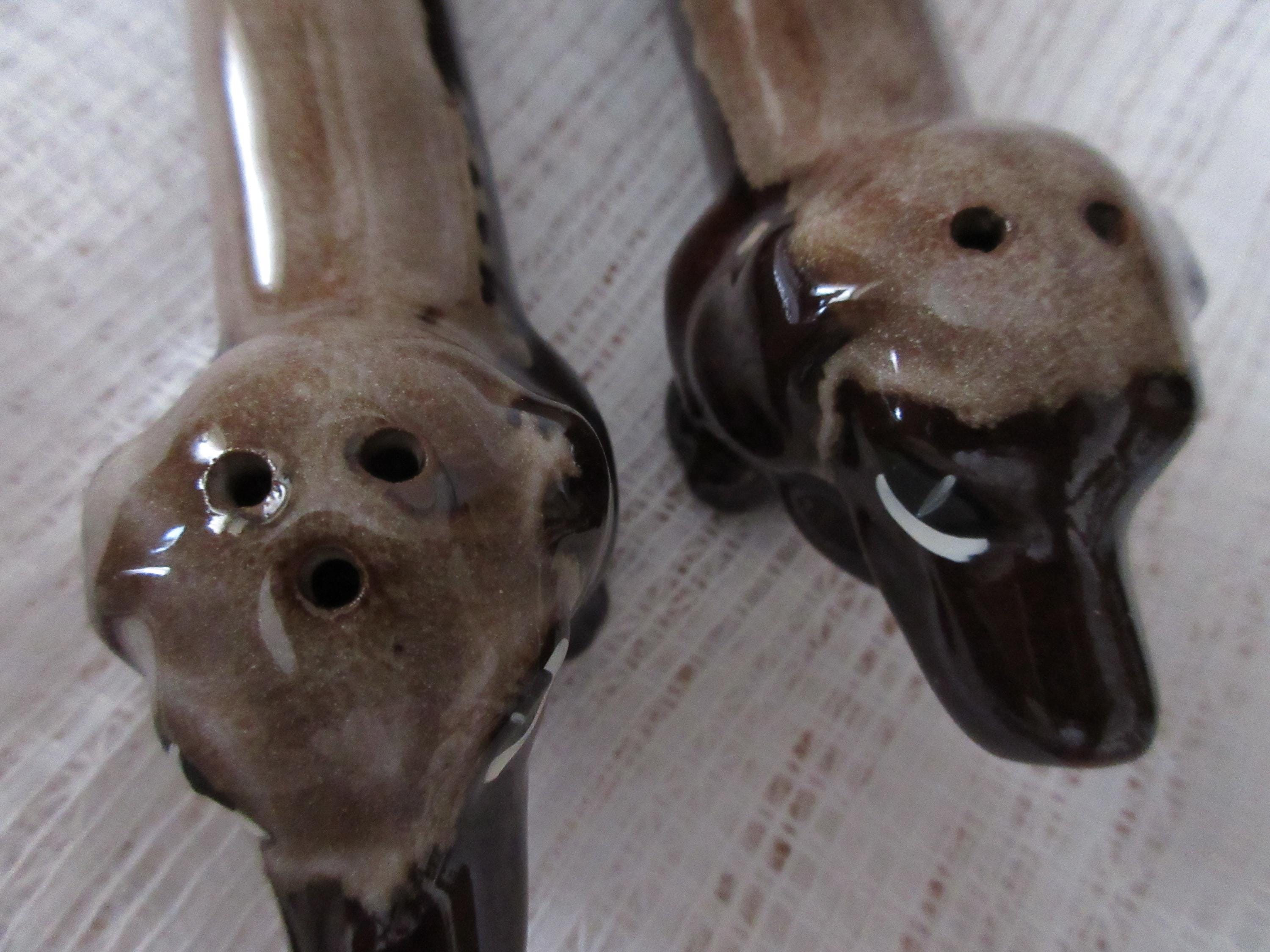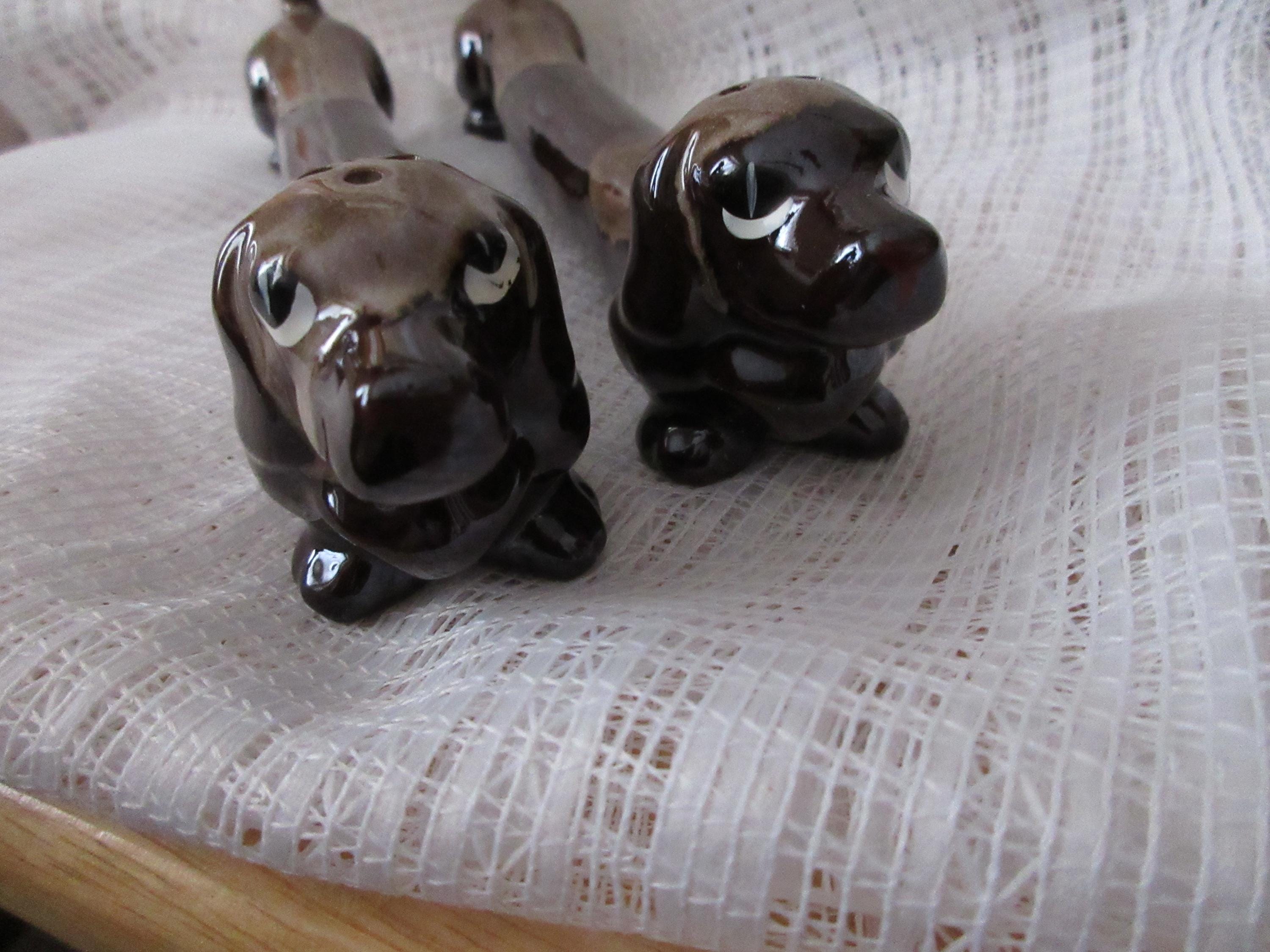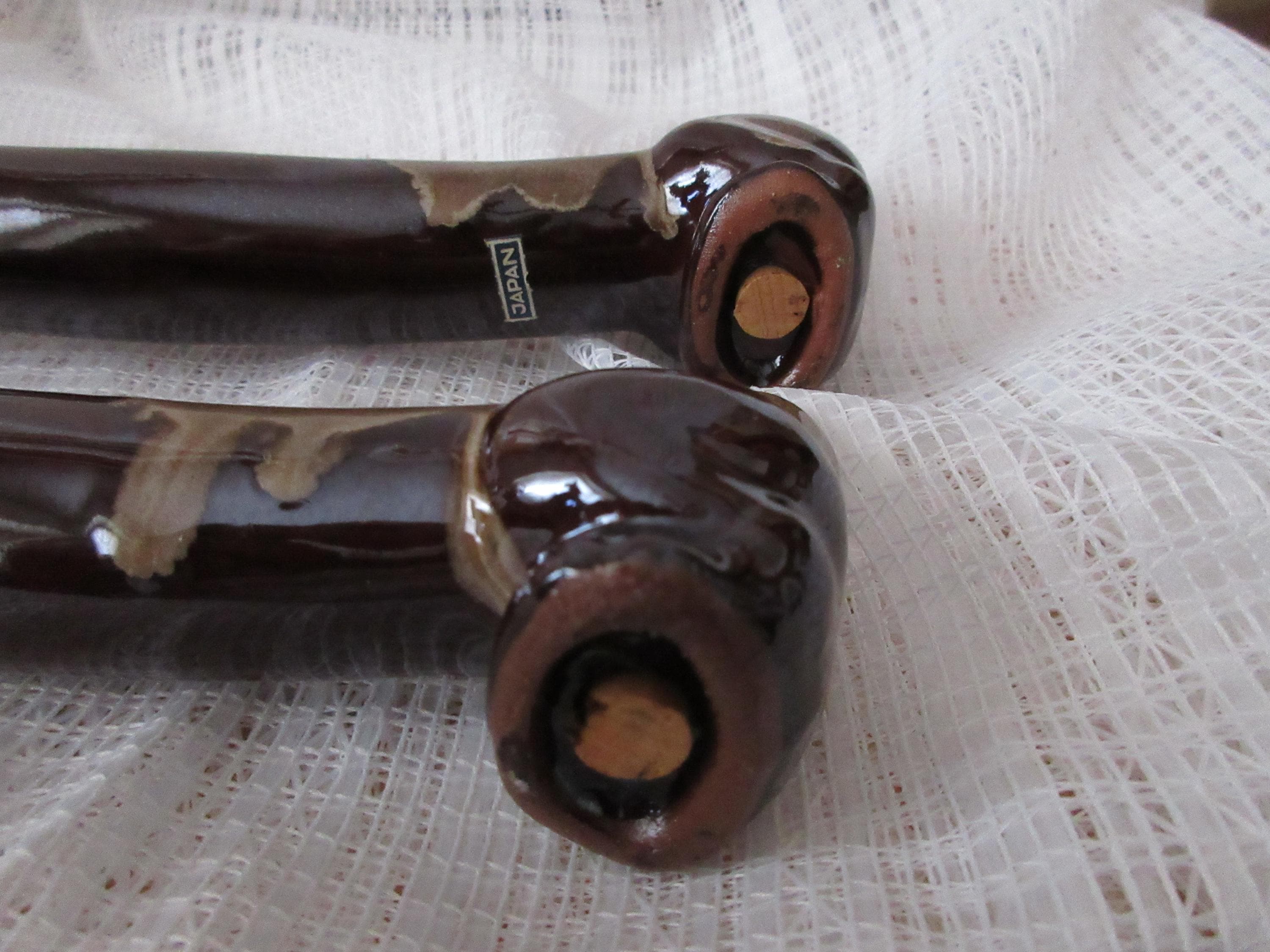 1907 - These dogs are used but in very good condition. There are no chips or cracks and both have stoppers and marked "Japan".