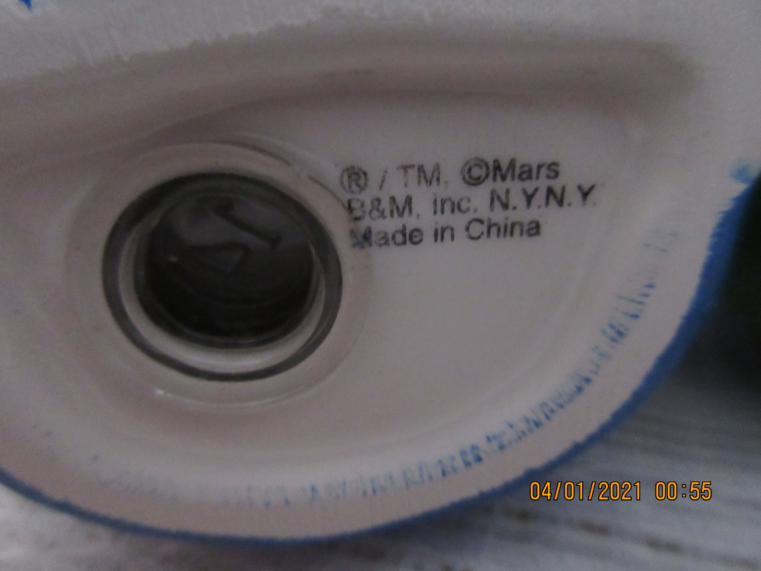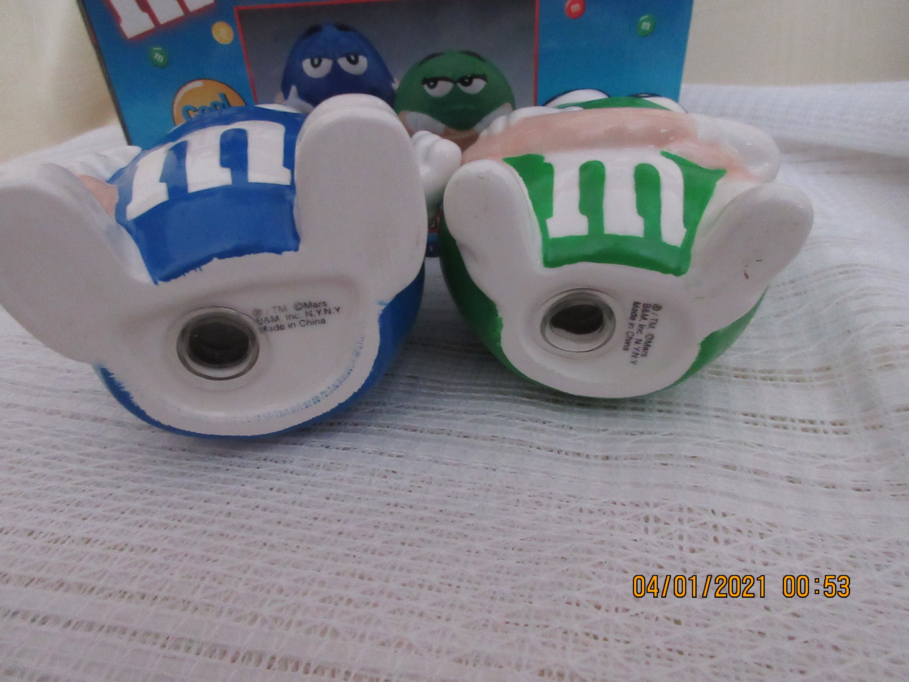 On the bottom of the box it is marked "® M&M's, M. and the M&M's Characters are trademarks of Mars, Inc. ©Mars, Inc. 1999 manufactured and distributed under license of Benjamin and Medwin, Inc., 230 Fifth Avenue, New York, NY 10001. Made in China".